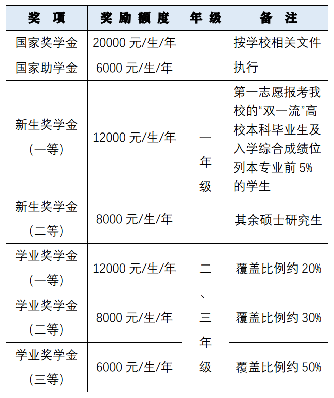 备注:获得研究生学业奖学金资助的研究生,可以同时参评研究生国家奖学金、研究生助学金以及其他研究生奖助学金。