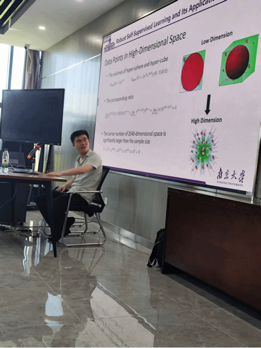 陈硕教授在题为《Robust Self-Supervised Learning and Its Applications》的报告中,以自身丰富的研究经历以及发表高质量论文的宝贵经验为蓝本,生动且深入地阐释了“从常规思路迈向创新突破”的科研思维模式。他着重分享了借助低维重构、相似认知建模以及高阶差分正则化方法,实现对比学习的研究路径,以及这些方法在零样本识别、多视图学习和图联合学习等领域的具体应用情况。值得一提的是,陈教授作为我校杰出校友,其求学历程和所取得的卓越成果,深深激励着在场的每一位同学。