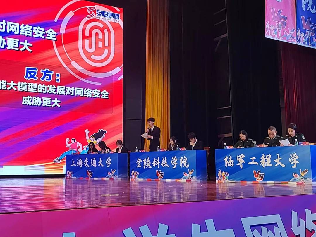 辩论赛是江苏省网络安全发展大会的重要赛事,已连续举办四届,聚焦网络安全领域新技术新应用、新政策新法规,通过现场辩论的方式,宣传普及网络安全知识技能和法律法规,培育发掘既懂网络安全技术又懂网络安全法律的复合型人才,为创新网络空间安全人才培养模式贡献智慧和力量。