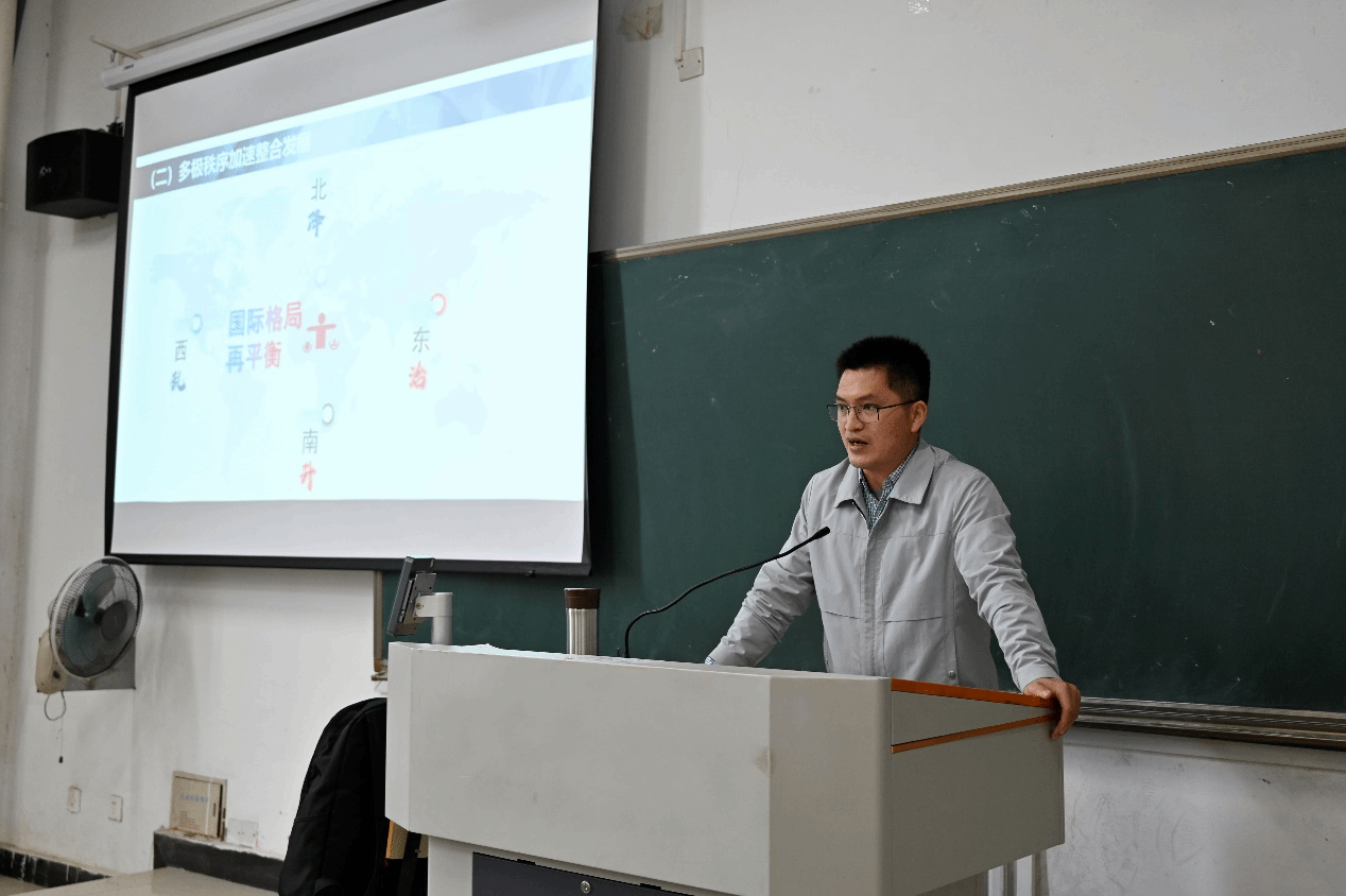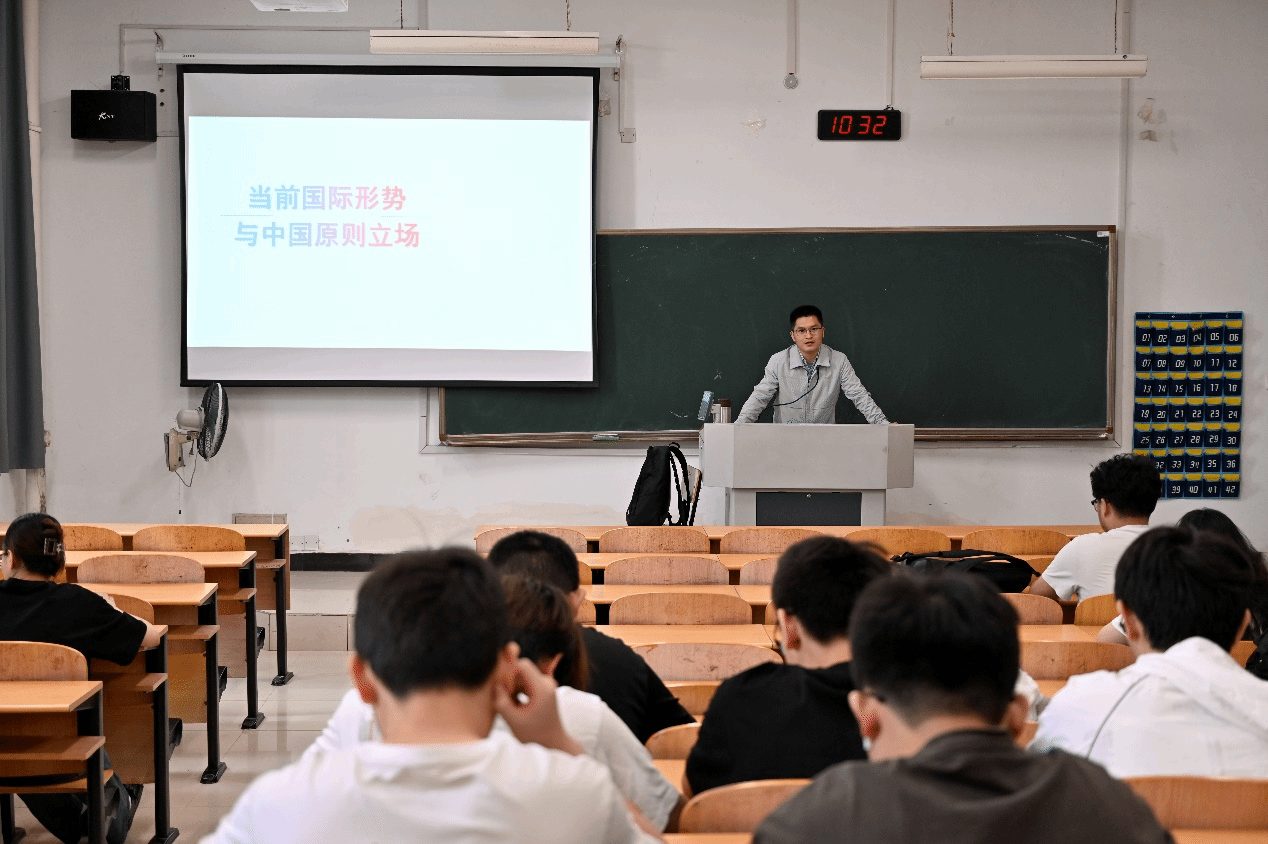 为加深同学们对中国特色大国外交和世界形势的了解,帮助同学们树立正确的历史观、大局观和角色观,太阳集团网站8722于6月2日在教学楼3102举办了两场形势与政策讲座,第一场由刘国英老师讲授,主题为“读懂中国式现代化”,第二场由朱林老师带领同学们进一步探讨,主题为“当前国际形式与中国原则立场”。
