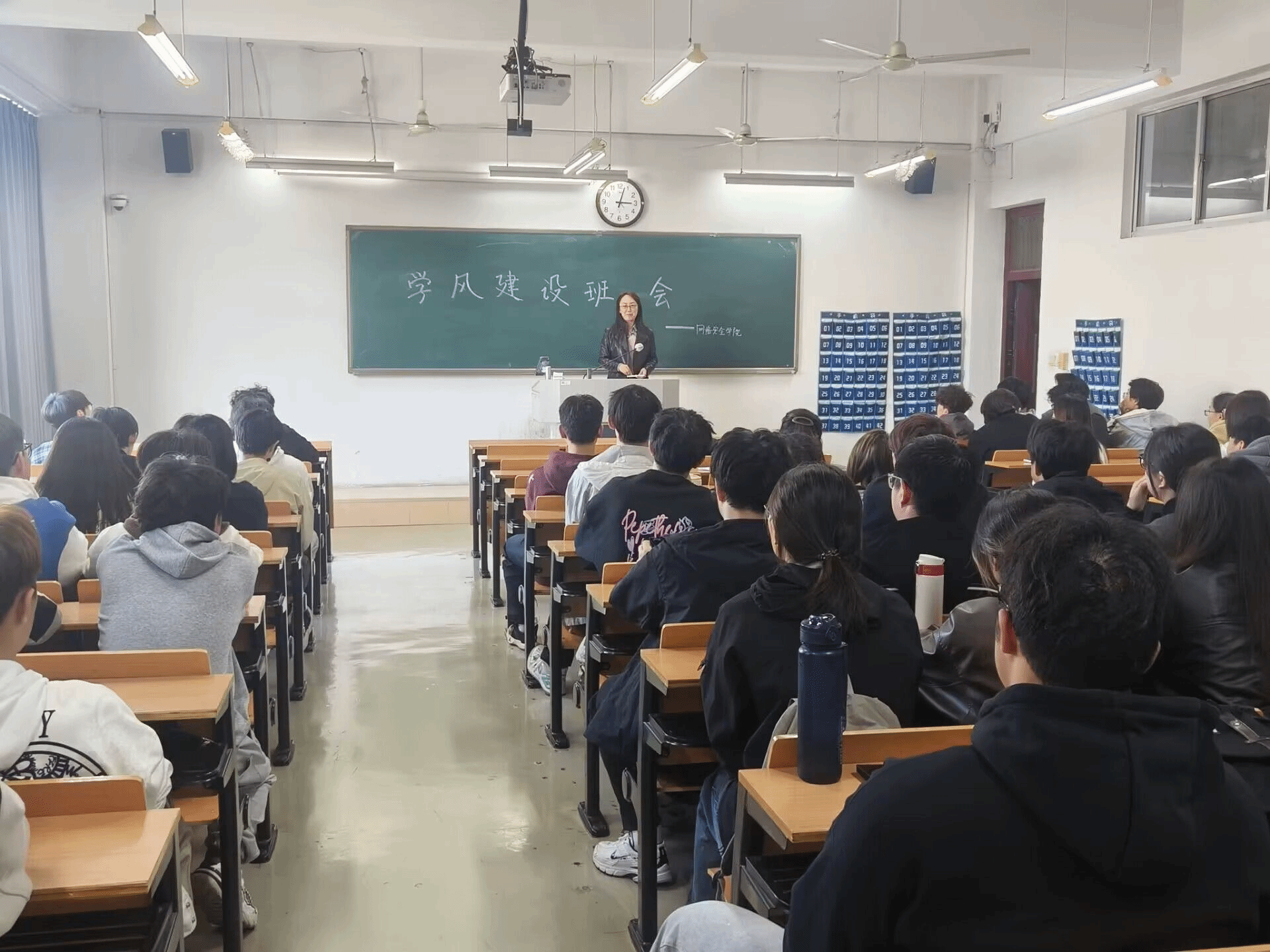 为强化本科教育教学审核评估冲刺阶段学风建设工作,切实增强全体学生对学风建设重要性的认识,11月6日中午,太阳集团网站8722在科技楼4-1103实验室召开学风建设推进大会。副院长阎浩、学工办副主任孙垒以及全体学生干部参会。