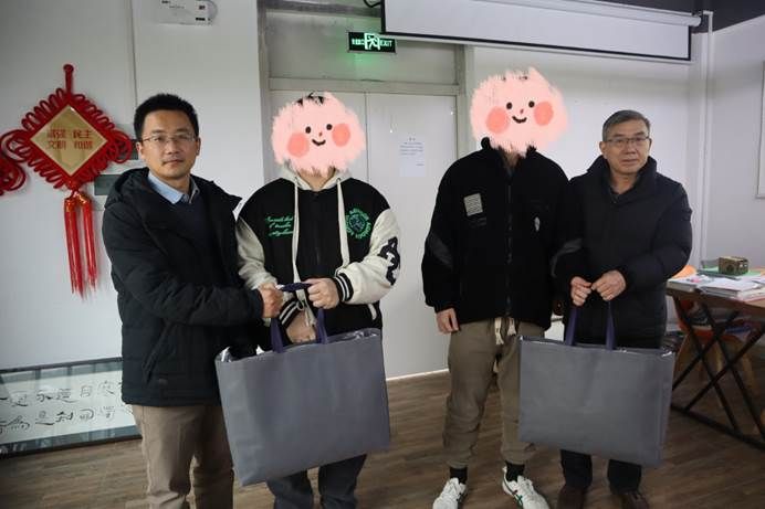 学校领导和辅导员们精心准备了冬季保暖用品,包括棉被、棉衣、围巾、手套等。活动伊始,党总支书记叶海青和学院副院长阎浩亲手将这些温暖的物资交到学生们手中。在慰问过程中,领导和辅导员们与学生们亲切交谈,详细了解他们的学习、生活状况以及面临的实际困难,鼓励他们要勇敢面对生活中的挑战,树立信心,努力学习,用知识改变命运。