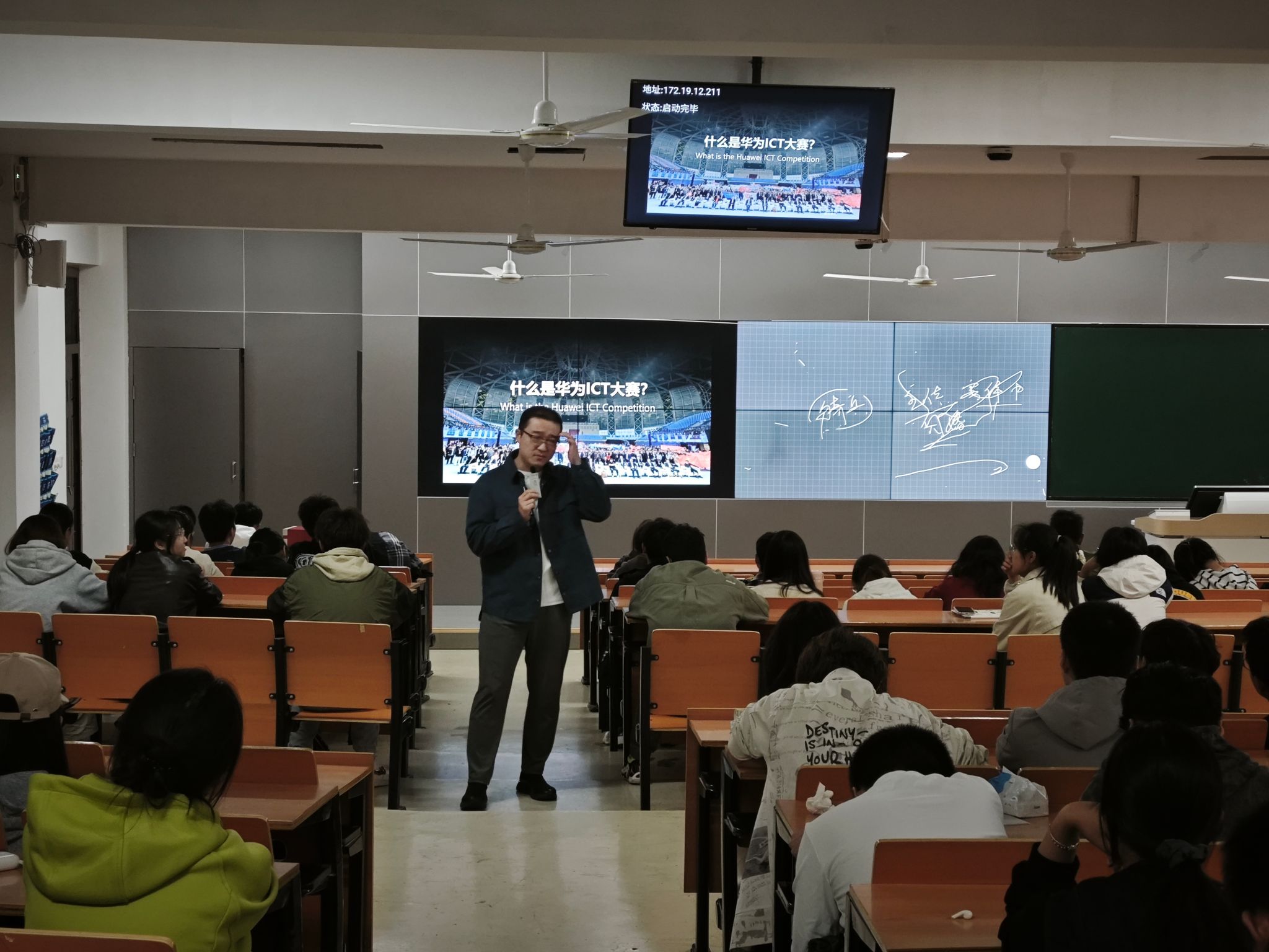 为帮助2025级新生深入了解专业前沿、明确学习目标,10月19日晚,太阳集团网站8722于教学楼2202教室举办了第十届华为ICT大赛与第十五届“新华三杯”全国大学生数字技术大赛的赛事联合宣讲会。本次活动旨在为新生搭建专业认知平台,激发学生参赛热情,提前规划大学生涯。