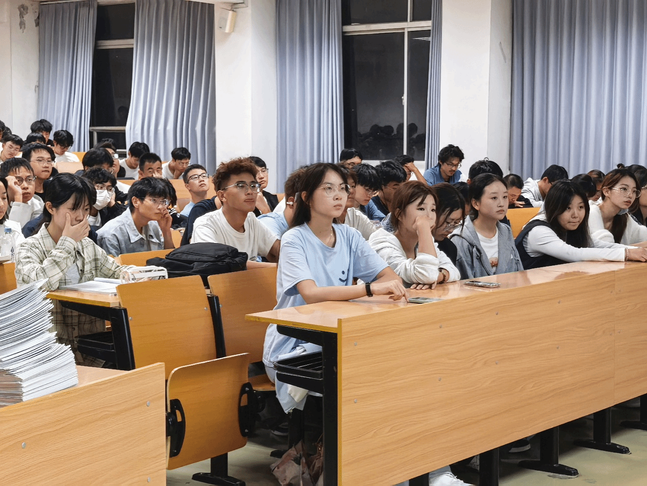此次活动吕鑫老师围绕了三个核心模块展开分享:一是大一年级和大二年级综合背景提升,包含科研、实践、竞赛等,二是大三年级和大四年级升学路径规划指导,包含考研、考公、就业实习等,三是解析行业发展趋势与人才需求,通过PPT演示加讲解的形式让现场同学更好的了解职业生涯规划。在分享环节中,现场还设置了互动问答环节,在场同学与主讲老师积极互动,气氛热烈。