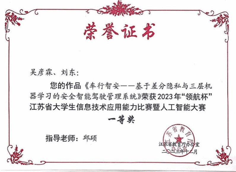 2023年“领航杯”江苏省大学生信息技术应用能力比赛暨人工智能大赛一等奖