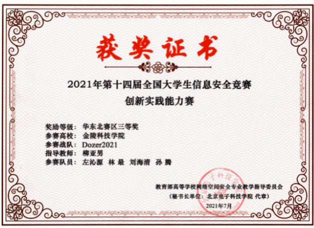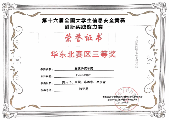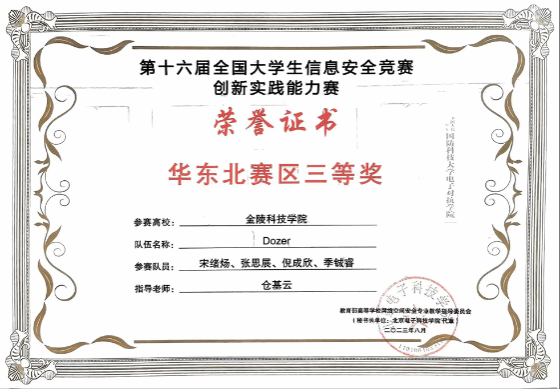 2023年全国大学生信息安全竞赛华东北赛区三等奖