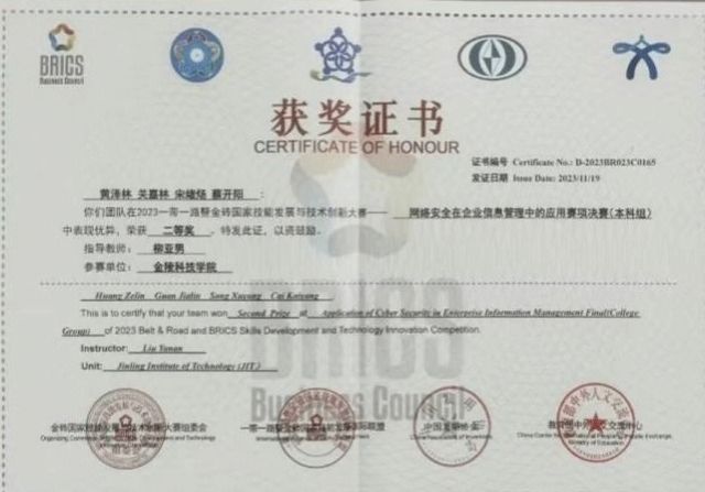 2023一带一路暨金砖国家技能发展与技术创新大赛二等奖