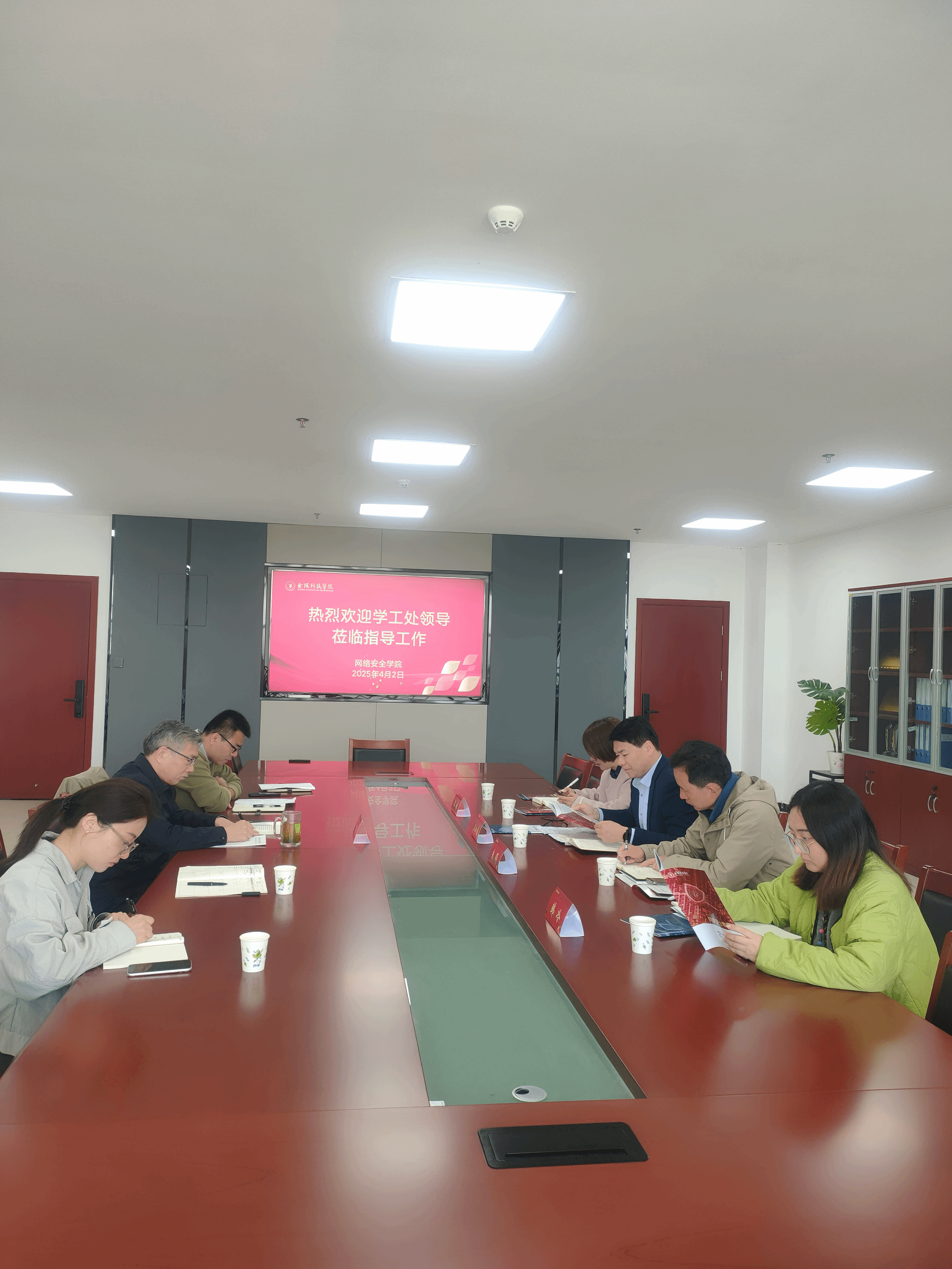 42日上午,党委学生工作部部长汪如春、副部长朱骅、副部长王姝、教育管理科科长韩冷到我院调研指导学生工作,院党总支书记叶海青和全体辅导员参加会议。